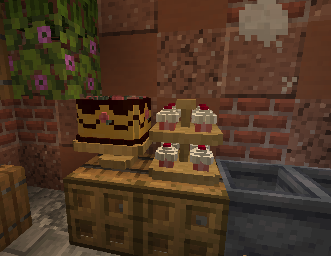 Cakes, Cheesecakes, Pies, and Plum Pudding are all placeable blocks, and clicking on them with an open hand will give you a "slice" of that dessert.
