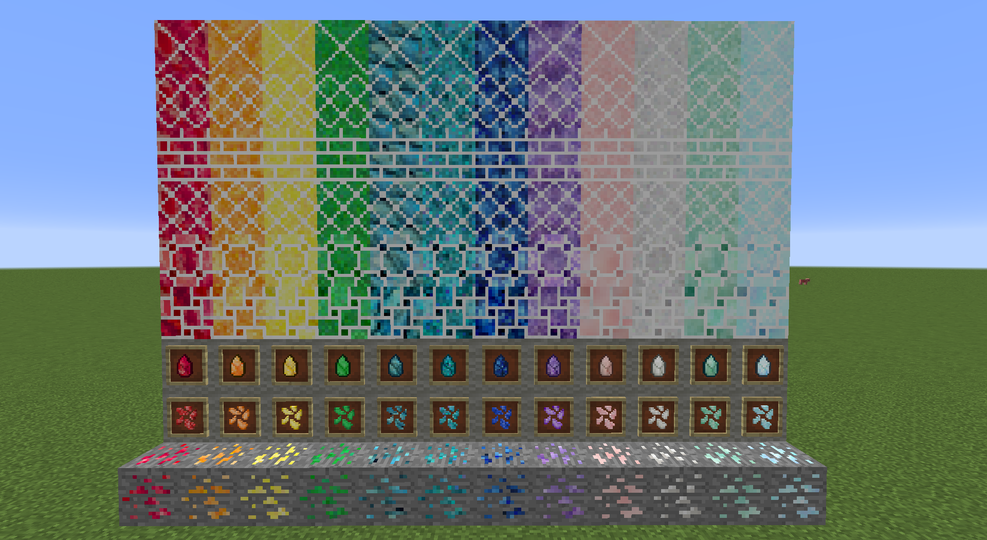 Clay Bricks are made by smelting pigmented clay in a furnace. They come in 2 sizes, regular bricks and large bricks. They also come in all 16 Minecraft colors.
