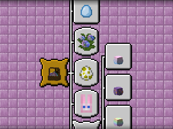 Open enough Easter Baskets and you just might be lucky enough to find your very own Easter Bunny! You can tame it with a carrot and it will follow you around forever. These special bunnies come in different colors and sizes. Collect all the colors for an advancement!
